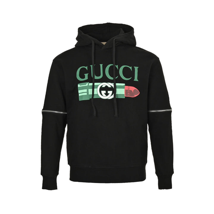 Lipstick Print Sleeve Detachable Hooded Sweatshirt