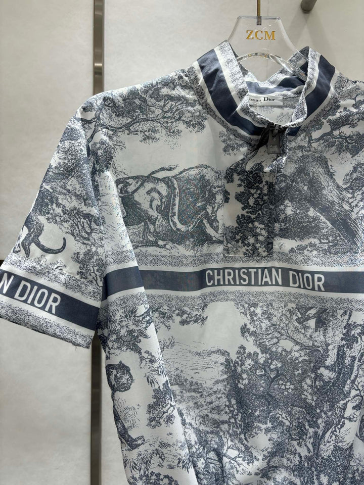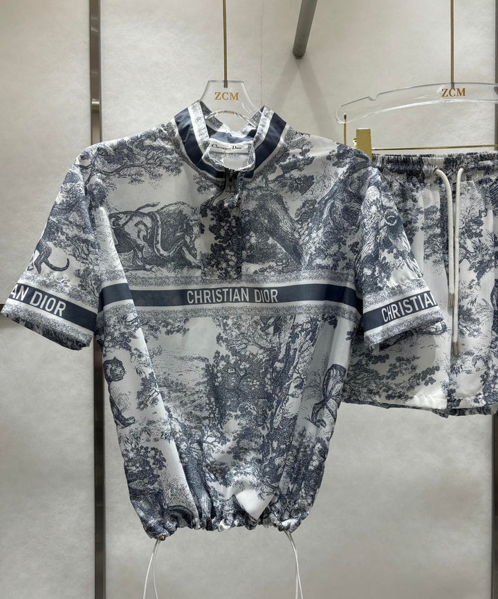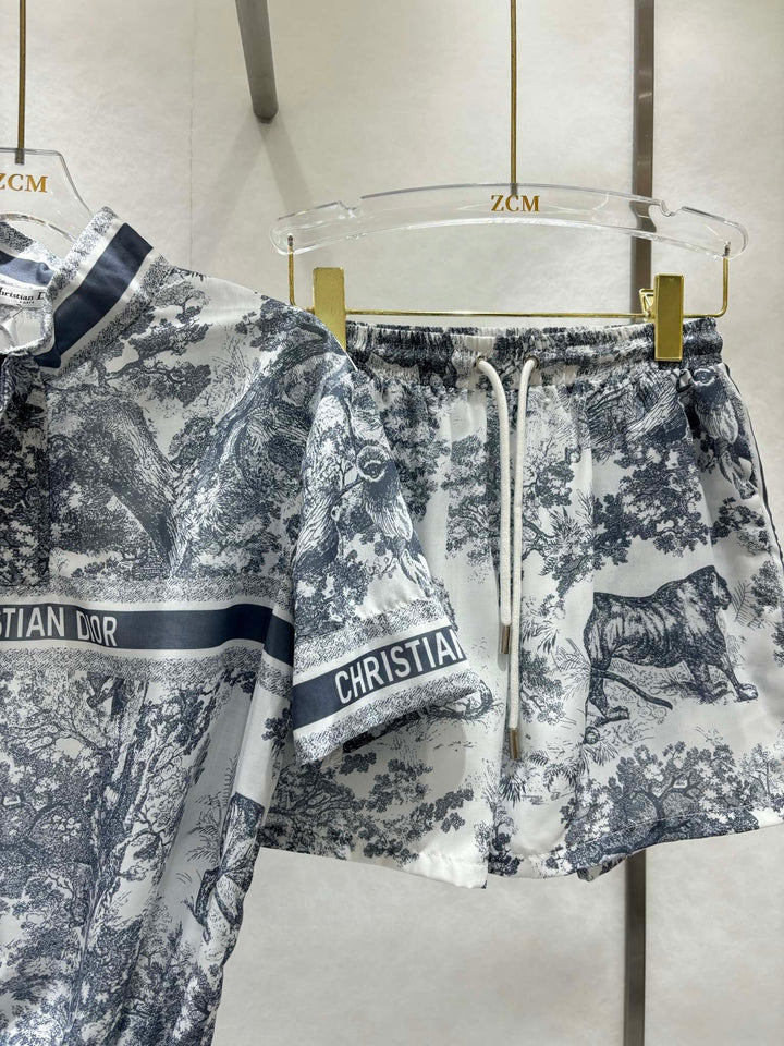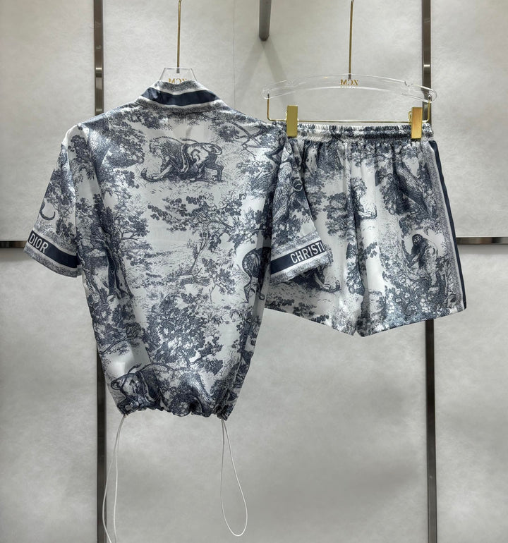 New spring and summer animal jungle leisure short sleeve + high waist elastic sports light gauze fabric is super suitable for hot summer comfortable breathable refreshing cool floral inspiration fusion animal French elegance overall fixed dyeing fabric with active printing technology luxurious and fashionable full of high-end feeling loose casual version of the upper body to reduce the age of the girl feeling can be sweet or salty sports leisure