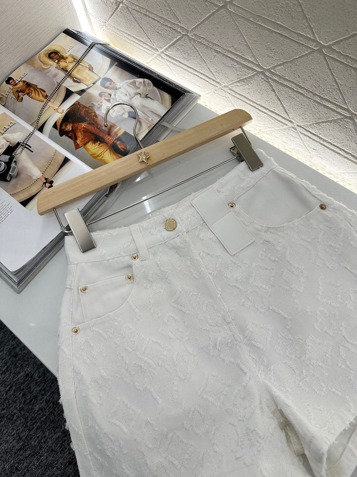 Jacquard Denim Vest Custom-imported twill cotton denim material Soft and comfortable Symmetrical flap pockets on the chest Adjustable with engraved metal buttons Adds layers to the look Full-body four-leaf clover letter jacquard logo Highlights the brand's style Fabric development Round neck open vest cut Can be paired with matching skirts and pants Matching outfit Relaxed and fashionable Series development