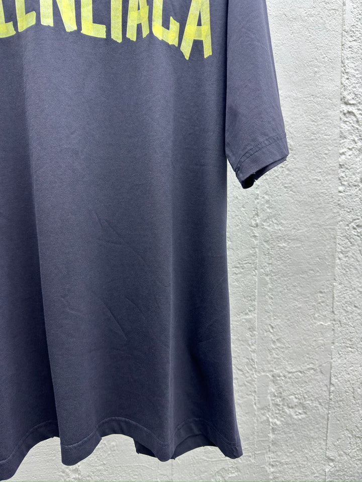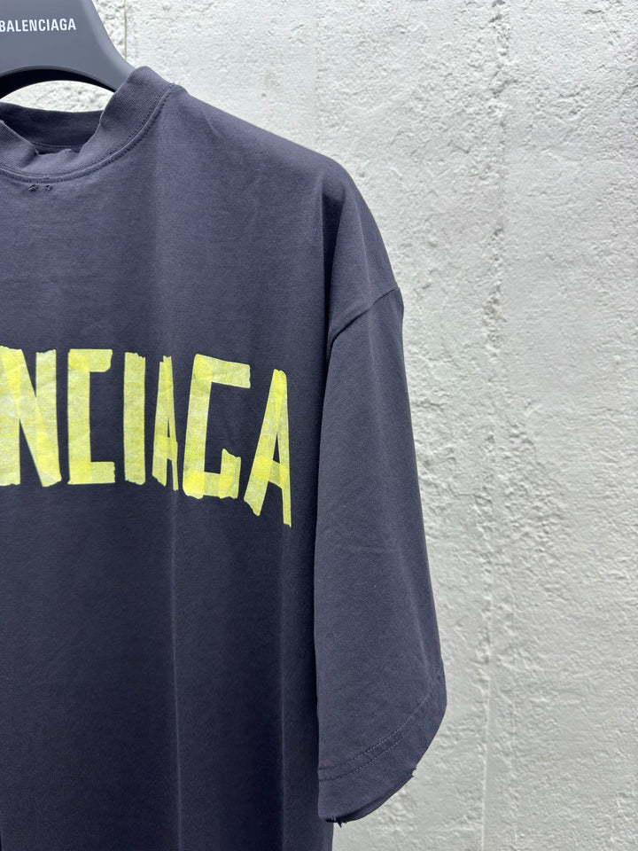 The sleeves and hem are treated with a frayed effect. The lining is clean and has no ends. The shoulders are frayed. The shoulders are stitched with straight three-needle and five-thread craftsmanship. The inner lining of the shoulders is taped. The fabric is made of distressed washed brushing. The collar is frayed and hole-designed ribbing. The fabric is custom-woven and dyed with consistent color and no color difference. Masking paper tape is used on the chest to process the letters. The process of overall weighting is washed. The fabric is comfortable, soft and wear-resistant. The letters on the back are manually aligned and shaped with a hot plate and glue printing process.