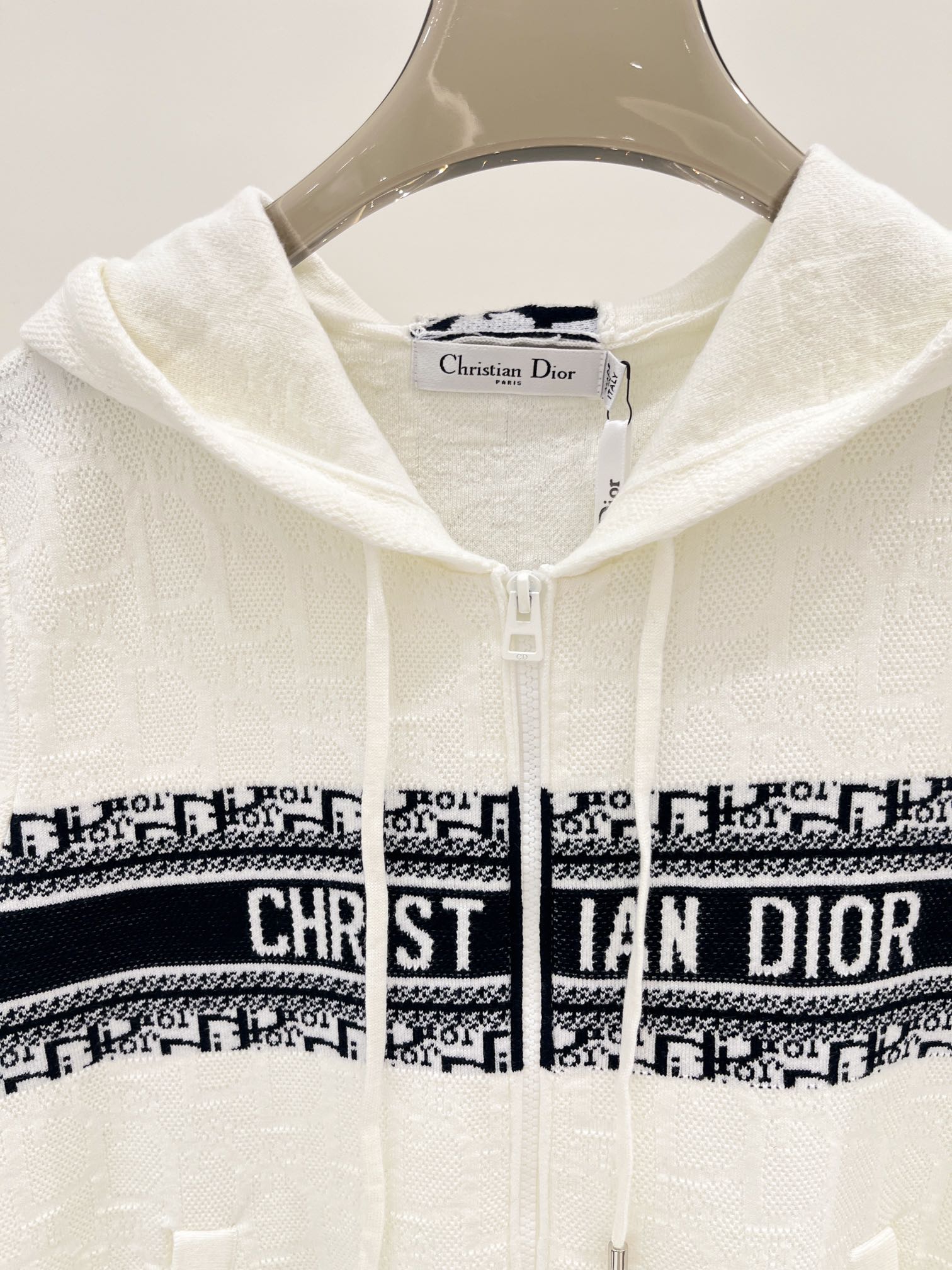 D New Hooded Monogram Letter Zipper Knitted Long Sleeve