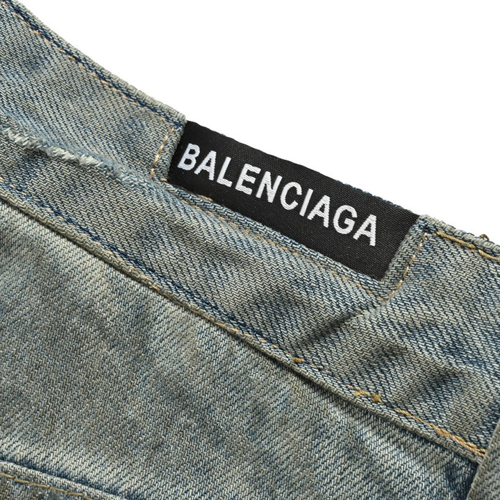Denim denim needs to be washed out first (light blue and white), then sprayed with monkey powder, then hand-rubbed with cat whiskers, cut out erosion tassels by hand, then washed, and then destroyed by itself, and finally hand-rubbed with imported mud slurry, hand-splashed ink, the process is complicated