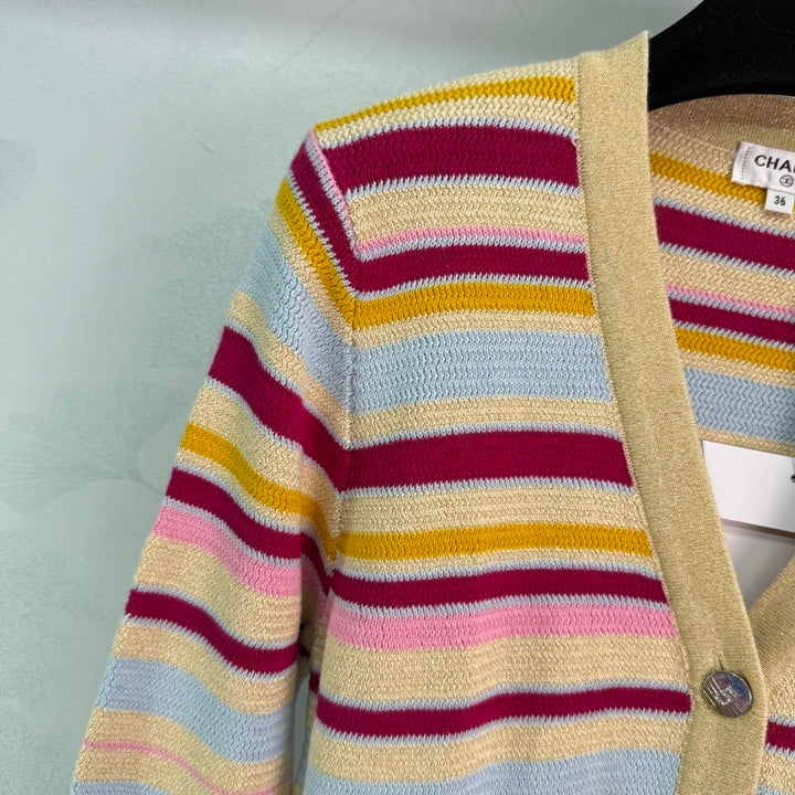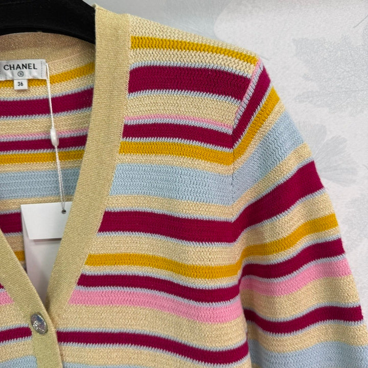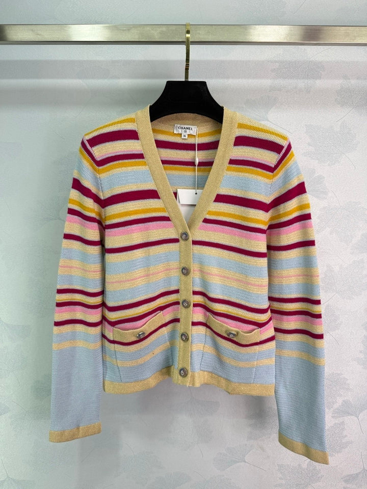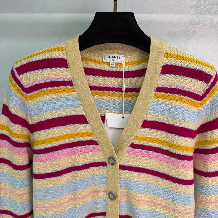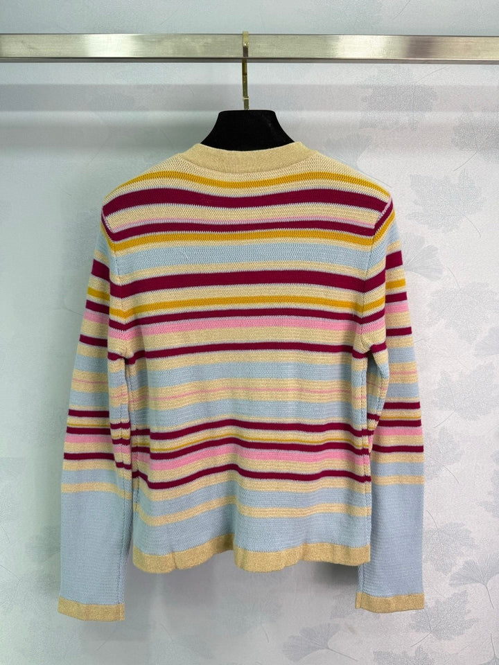 25 Early Autumn new contrast color striped V-neck long-sleeved cardigan! Made of delicate texture, soft and close to the skin, colorful stripes, youthful vitality, age-reducing and playful, versatile and fashionable ~ 1 color 3 sizes sml