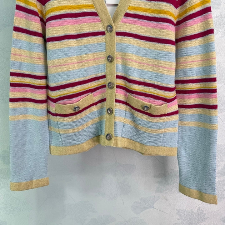 25 Early Autumn New Contrast Striped V-Neck Long Sleeve Cardigan