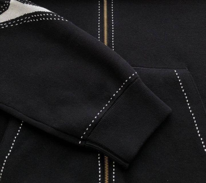 New intarsia zipper cotton hooded sweatshirt