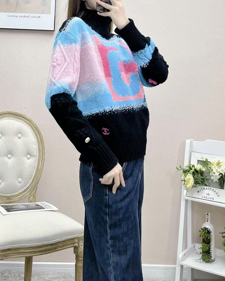 New Colorblock Long Sleeve Pullover Knitted Sweater