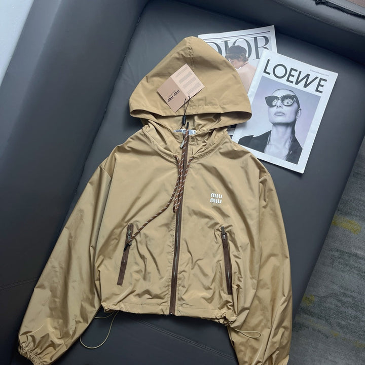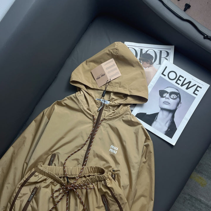 Memory silk sunscreen short windbreaker + shorts set, original custom fabric, light, comfortable and breathable, great texture! Classic hooded versatile version, age-reducing girlish style! Paired with leather lipstick red ribbon, fashionable and handsome, sweet or salty! Versatile and beautiful on everyone! Original custom hardware accessories, side contrast wave embroidery ribbon, recommended as a set! The workmanship quality depends on the details! Available now