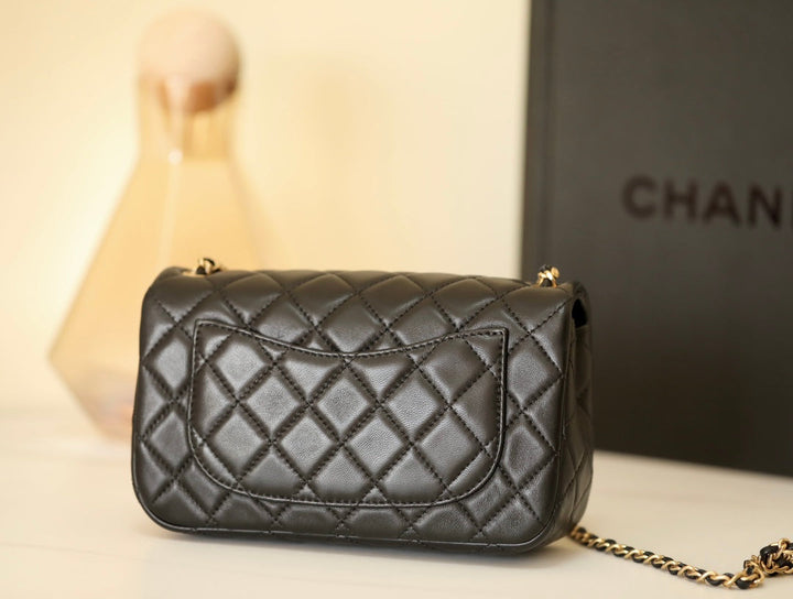 Mini Rectangular Pearl Crush Quilted Black Lambskin Gold Hardware