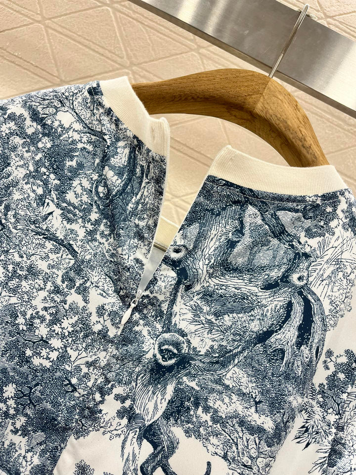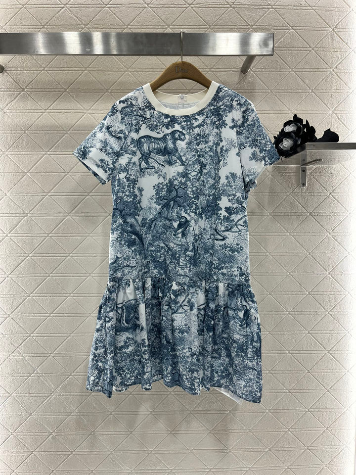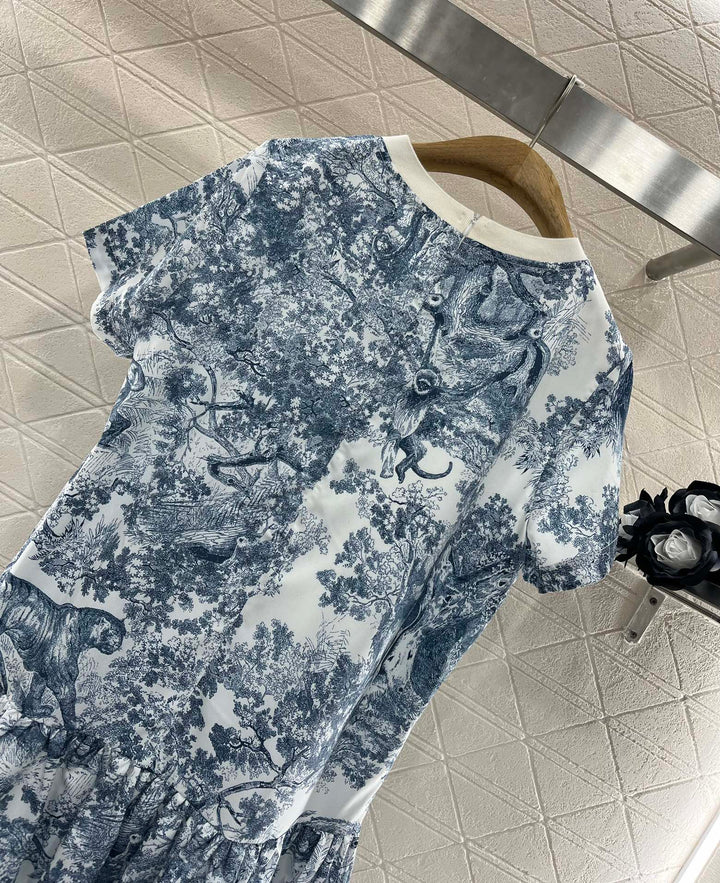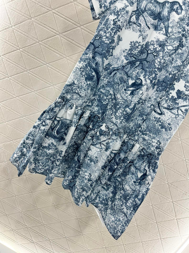 Twill material, comfortable and breathable, light and elegant, animal round neck dress, ready-to-wear ink jungle animal pattern, retro and fashionable, low waist pleated treatment at the hem, showing sweet and elegant temperament, with zipper on the back for easy wear, suitable for vacation and daily travel.