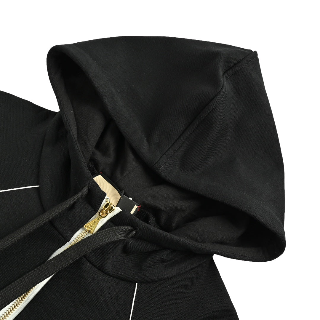 - Made of 21 double-ply interlaced 32-count double yarn combed cotton large terry bottom fabric, which is the same 400g weight as the original fabric. The original gray fabric is disassembled and weighed before being woven and dyed. The minimum order quantity alone is 50 pieces, ribbed 21 counts of 1*1 double-ply yarn, custom-made red and green contrasting cotton webbing around the waist, high-density embroidery of the main waist mark, with a 35.5cm triangular matte electroplated engraved puller, and a gold 5# closed-tail zipper with engraved letters on the bottom. It comes with a brand new green tag and a wash mark. When installing the zipper, it takes an experienced craftsman to make it smooth and beautiful. Practice makes perfect. The interior is all sewn with lining. It is an original version and the upper body is amazingly good-looking.