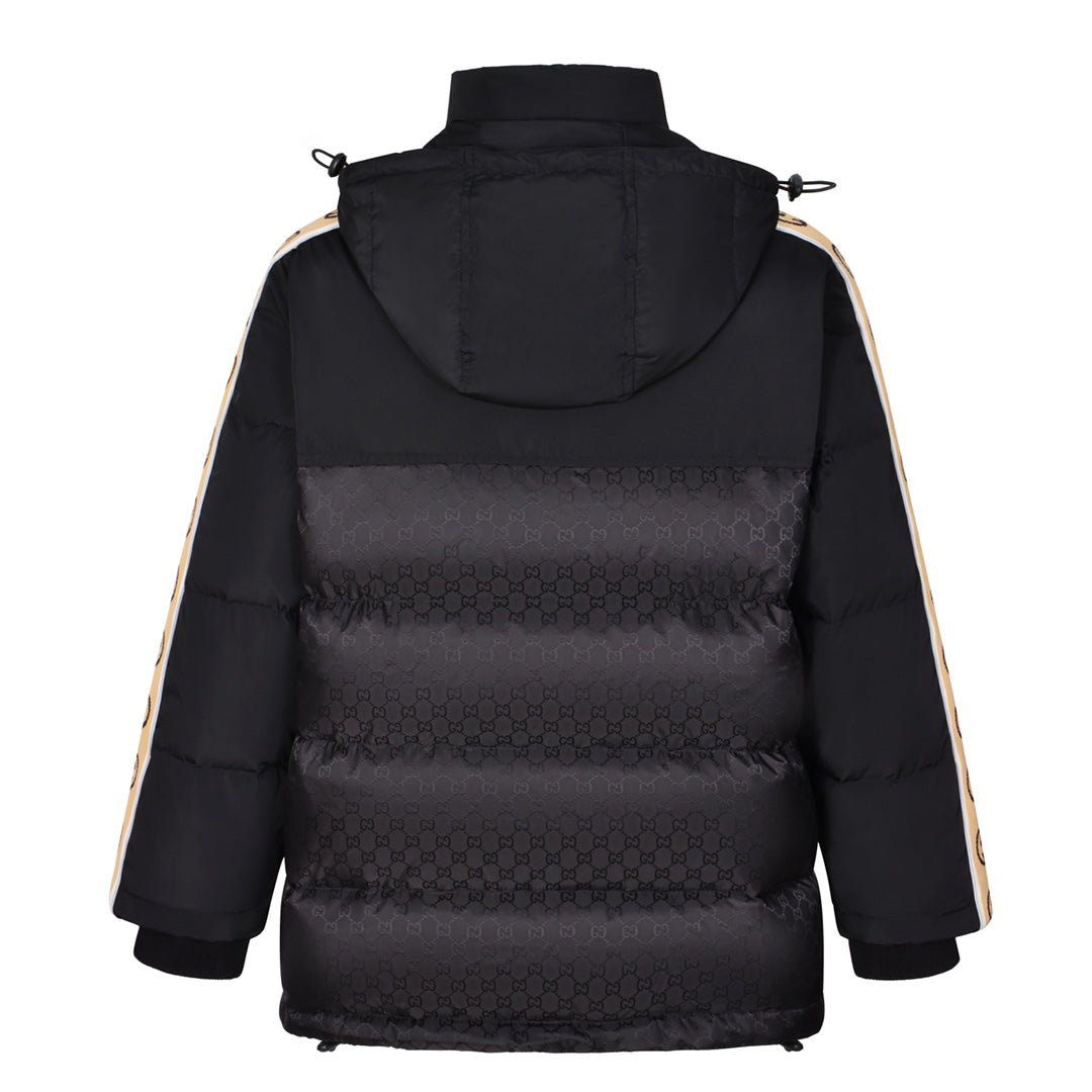 The fabric is made of custom-woven jacquard high-density nylon waterproof material, and the filling is made of RDS-certified high-quality national standard 580g 90 goose down filling, which maintains the original softness, elasticity and feel of down. It has three layers of anti-drilling fabric and four layers of locking velvet technology. The sides are made of custom-woven sesame pattern webbing with symmetrical left and right positions, the reflective strips are custom-woven elastic belts, molded genuine antique silver four-button buckles and zippers, a full set of customized accessories, and the workmanship details are perfect.