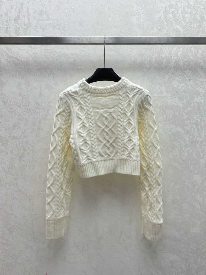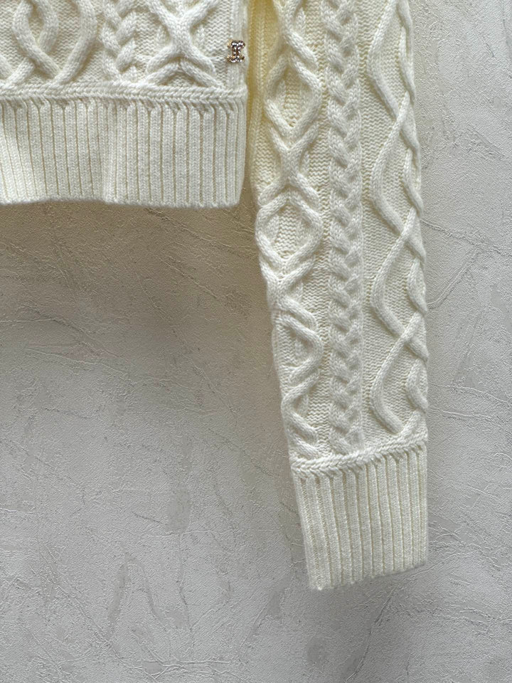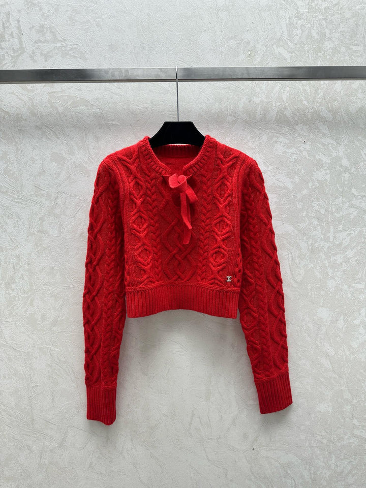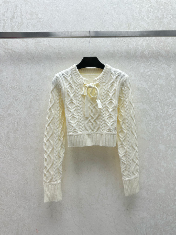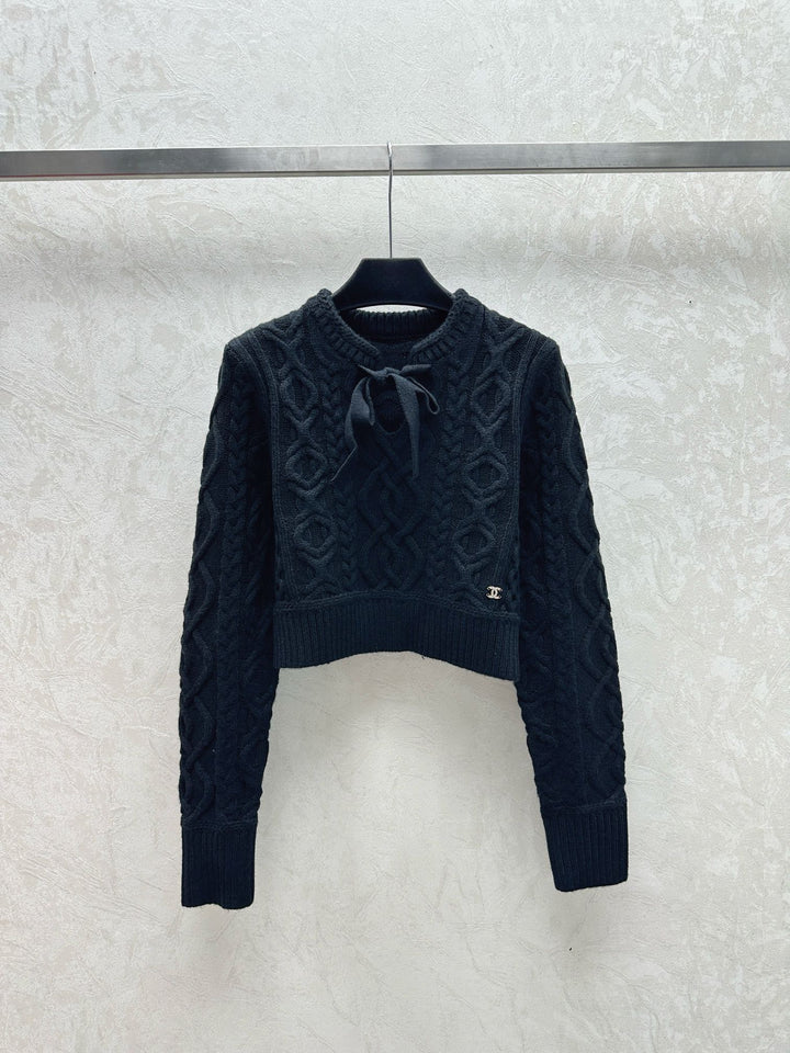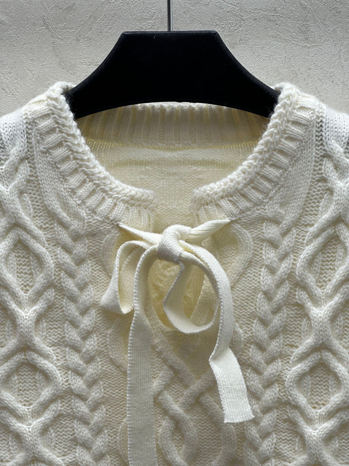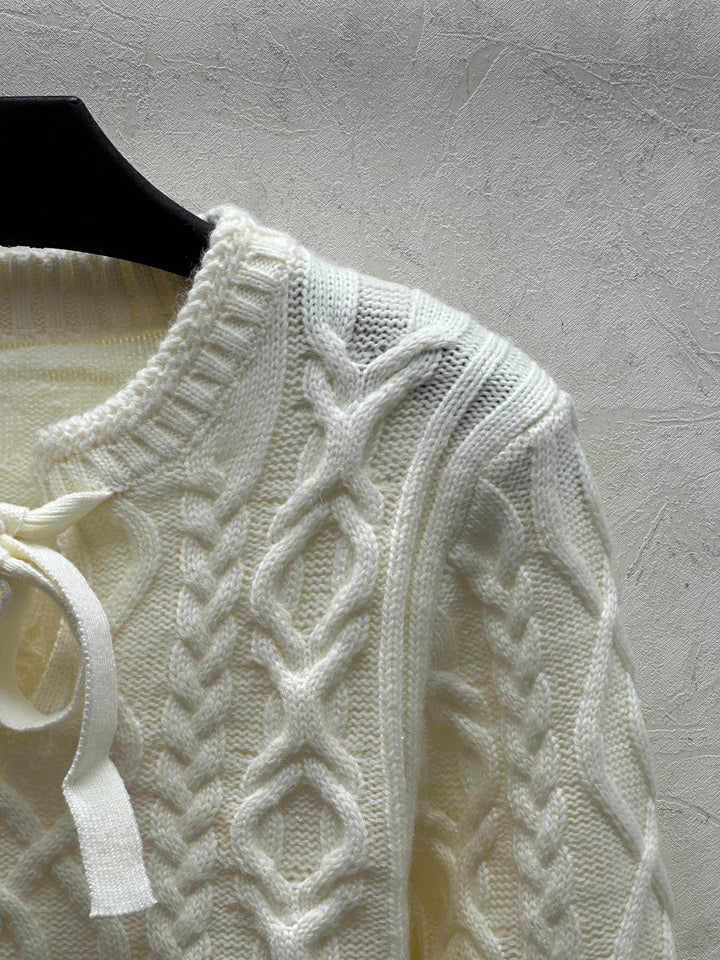 Cashmere cable-knit bow-tie crewneck long-sleeved top