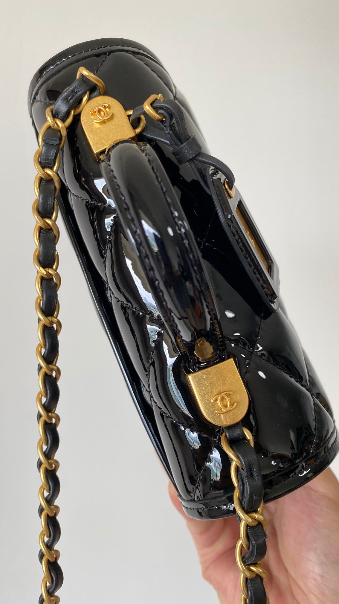 Patent leather crossbody bag, tofu bag! "Sanyang" calfskin paint! Distressed sand gold buckle!