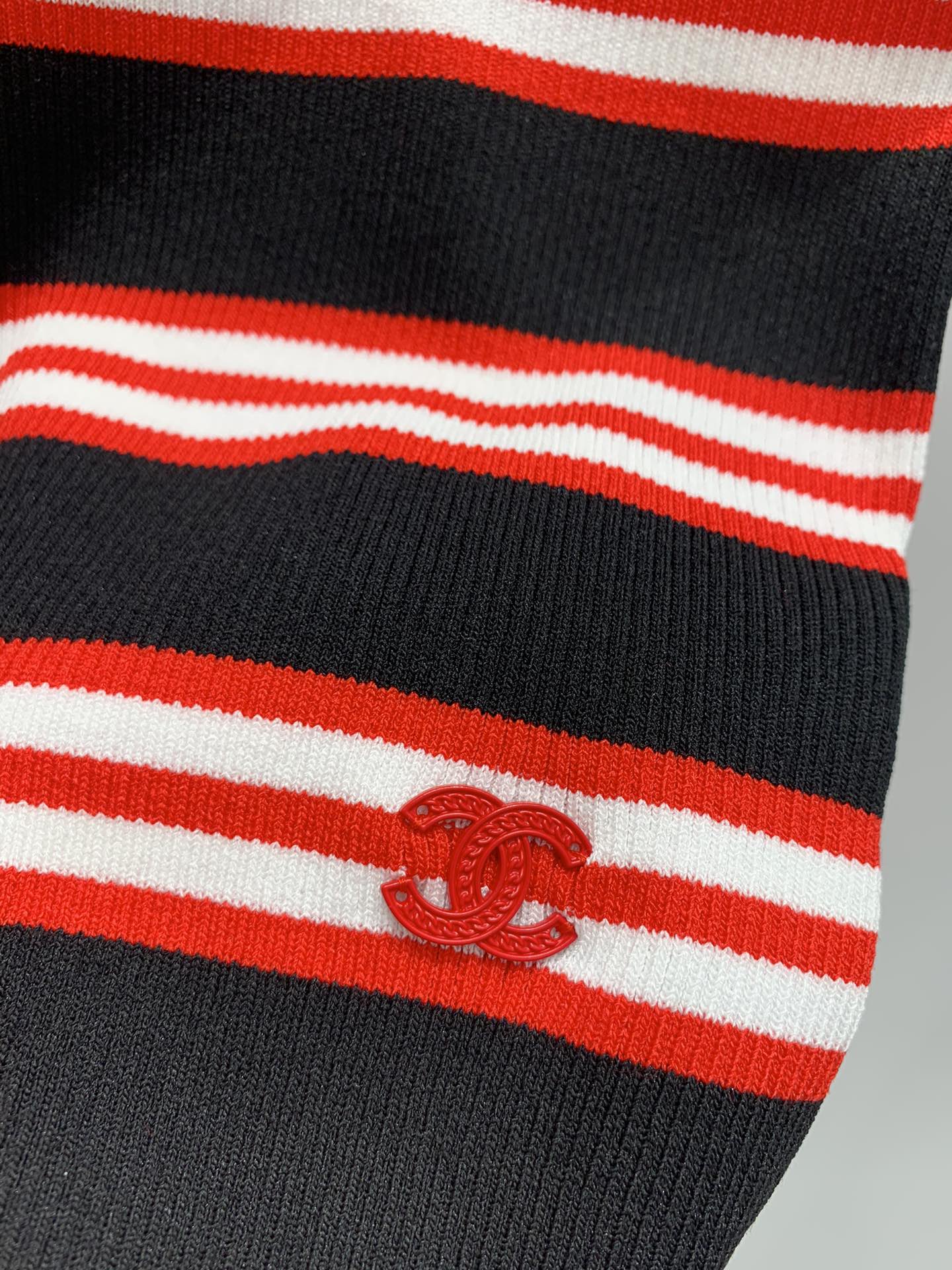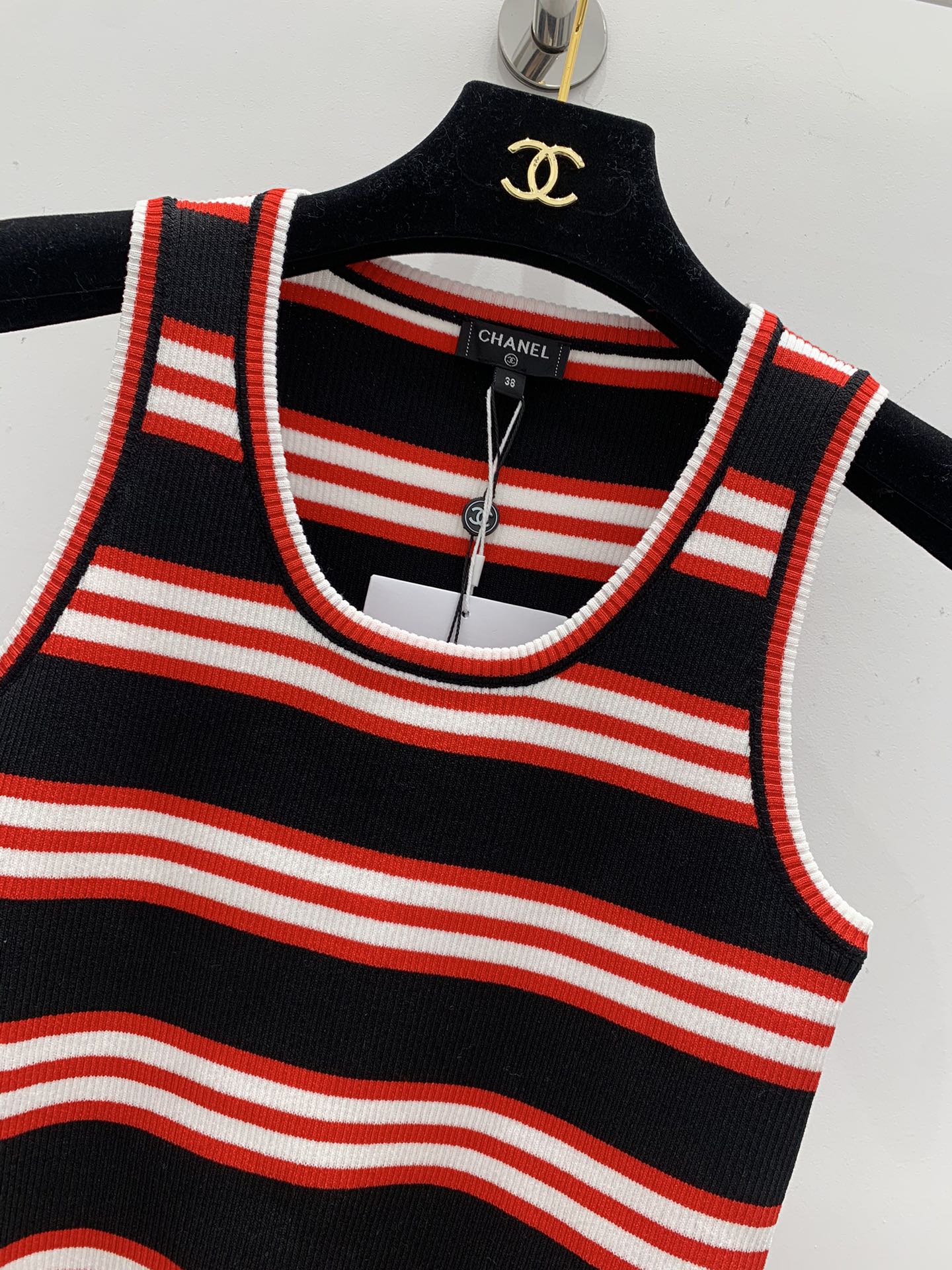 New knitted U-neck vest for spring and summer 🆕 Classic and timeless striped contrast stitching design, collar and cuffs with ribbed edges, classic double C logo embellishment, simple and versatile, size smlKnitted vest, imported 100% wool material, hollow knitted texture, logo decoration, overall high-end and simple, can be worn alone or layered, suitable for all seasons when worn aloessalicne. Single product, simple design, fashionable and high-end