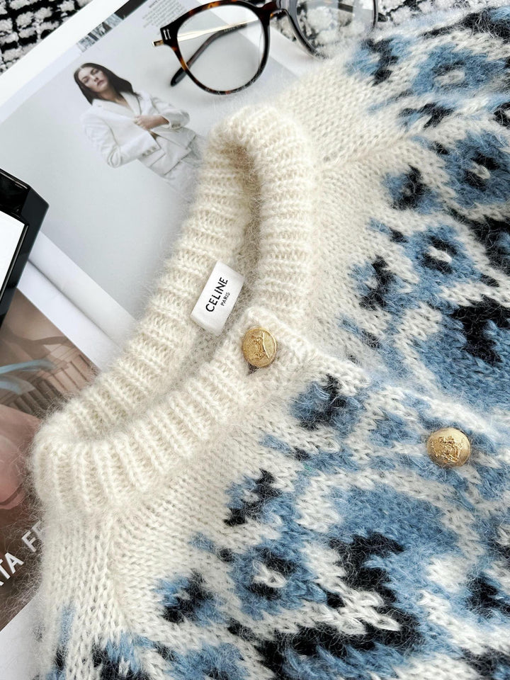 Made of mohair blended fabric, soft and comfortable fabric, exquisite pattern created by flower picking technology, wide version with dropped shoulders, customized metal button mold for the front, lazy style without losing fashion sense, with a design sense of lattice pattern, creating a retro temperament, combined with a unique style of logo pattern, adding more fashionable fun, easily creating a wonderful and simple Nordic atmosphere.