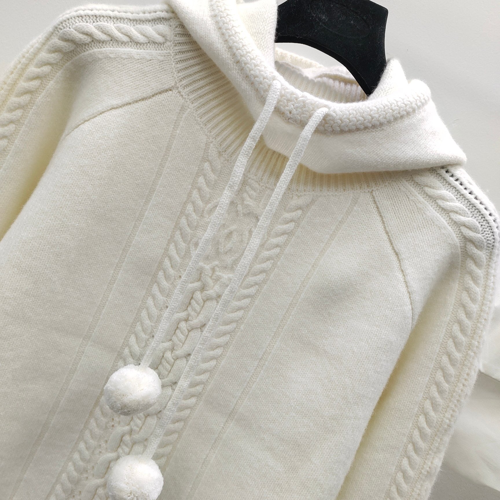 Three-dimensional jacquard ball pendant hooded knitted top