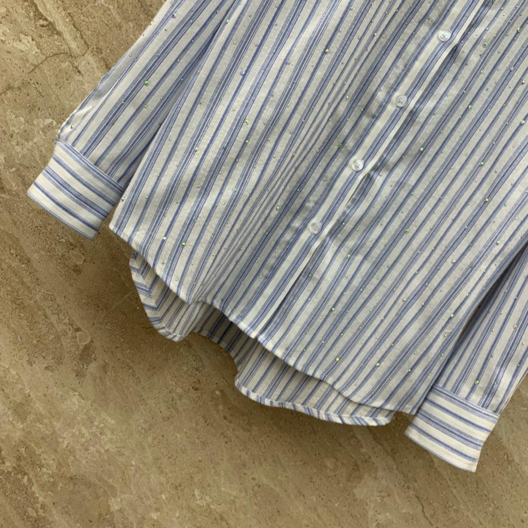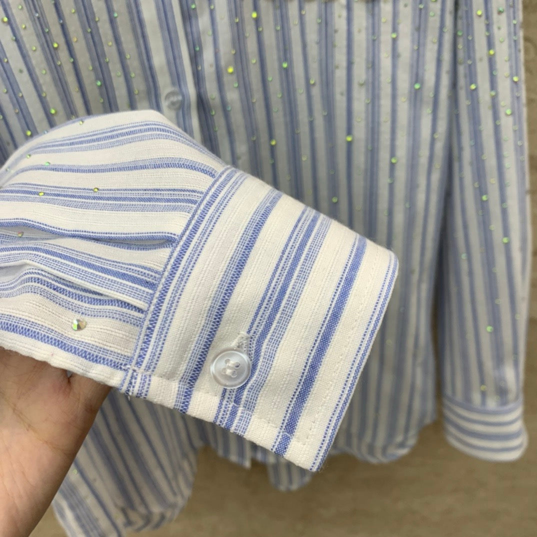 The striped shirt is really an essential item in your wardrobe! Summer ultra-thin fabric, excellent texture, three-dimensional letter beading craftsmanship, a versatile item that can be worn salty or sweet, custom fabrics, whether worn alone or as a sunscreen outerwear, super versatile! The overall oversize version is very tolerant, with a large margin and is not picky about body shape