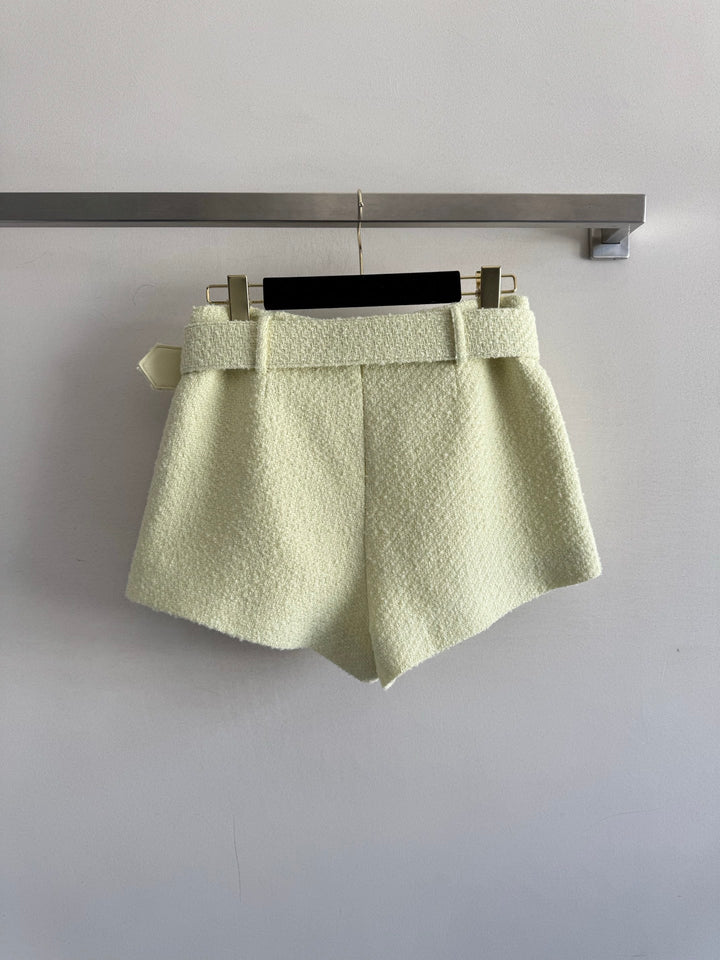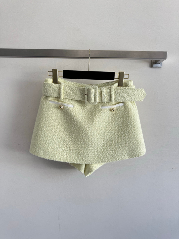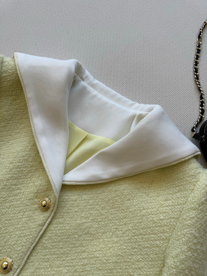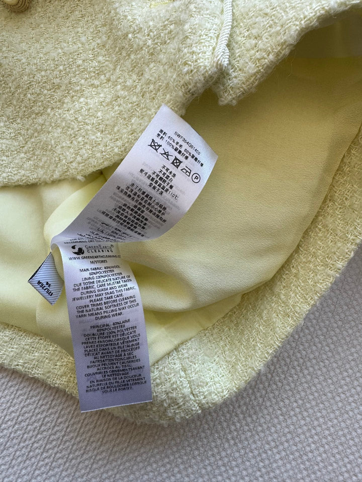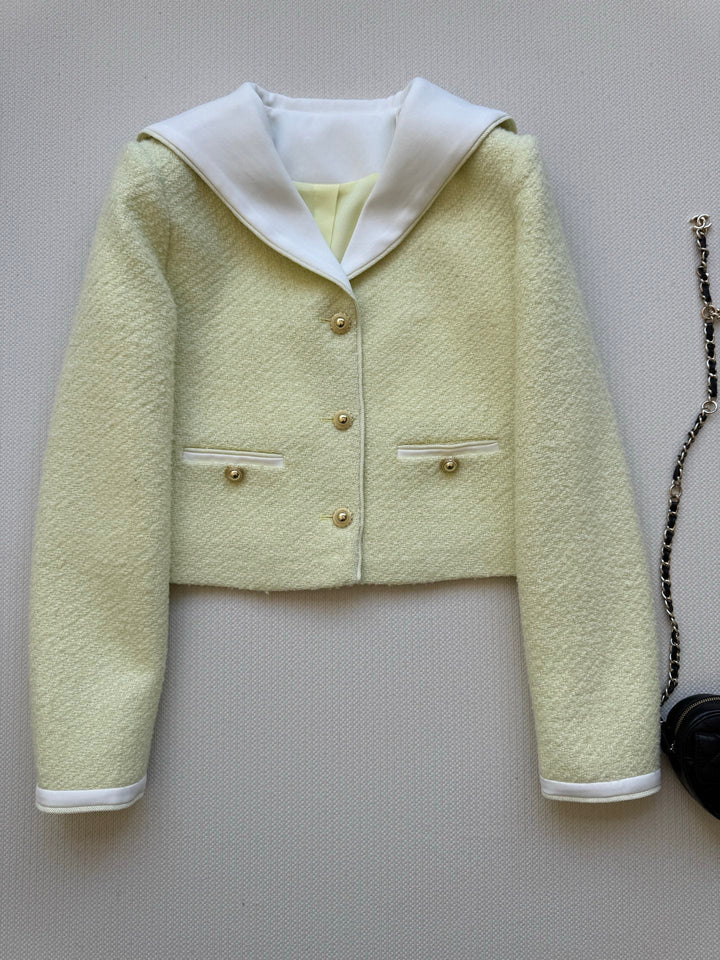 25 new navy collar Chanel style suit. Contrast navy collar design with exquisite double pocket embellishment. ✨ The short version enhances the body proportion. Paired with the same belted culottes, this set is absolutely stunning. It is simply the outfit of a chaebol daughter. The top is youthful and smart without losing the elegance and sweetness! This yellow is very whitening👍 Wearing it gives off a ladylike temperament, plus the overall color is also healing and beautiful🤩 A must-have for fair-skinned and wealthy women~