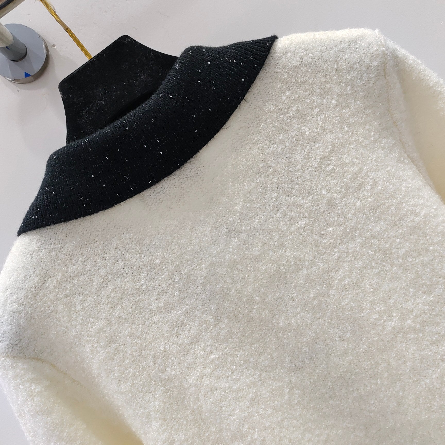 exquisite temperament, shirt collar sequined yarn + thick warm fluffy loop yarn. 5-digit gold buttons, age-reducing and fashionable outfit