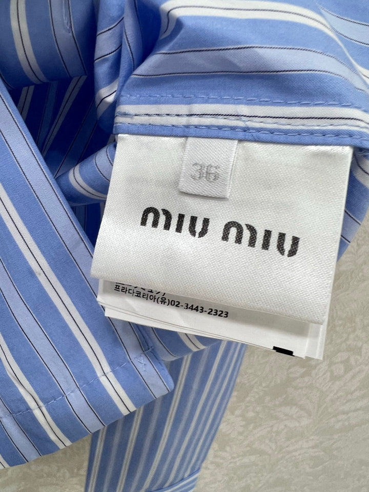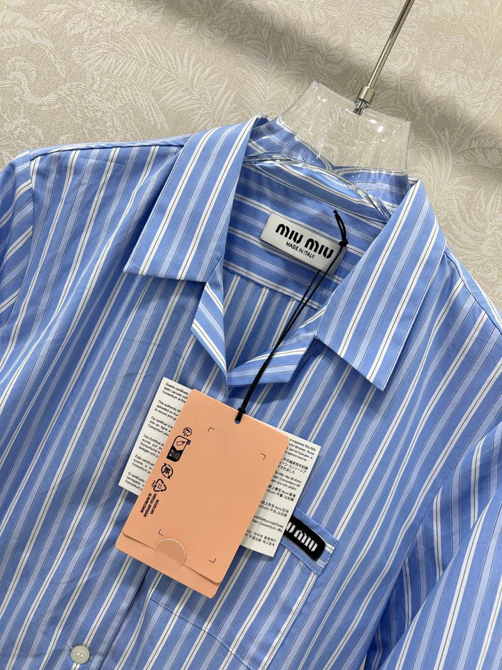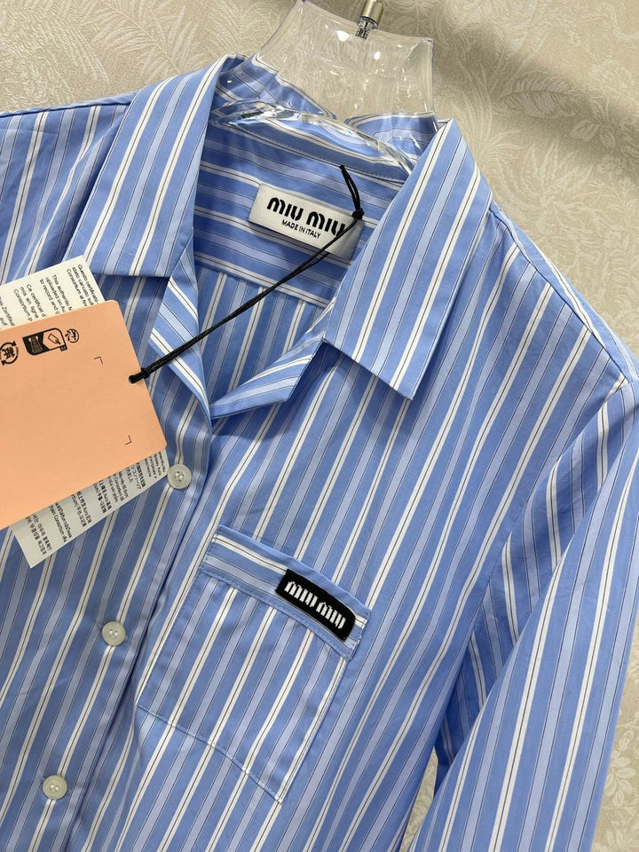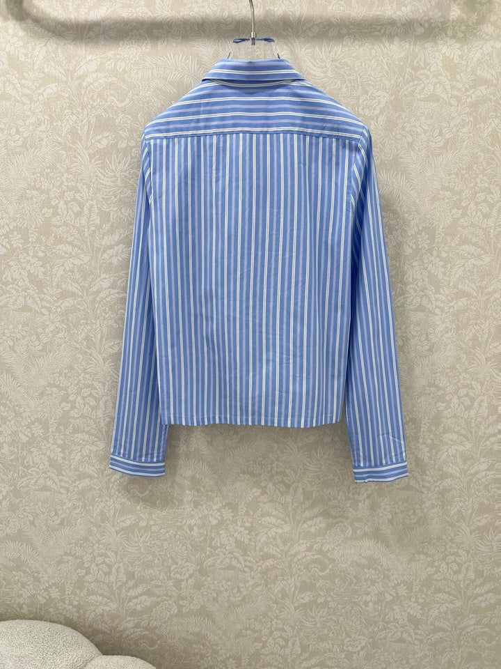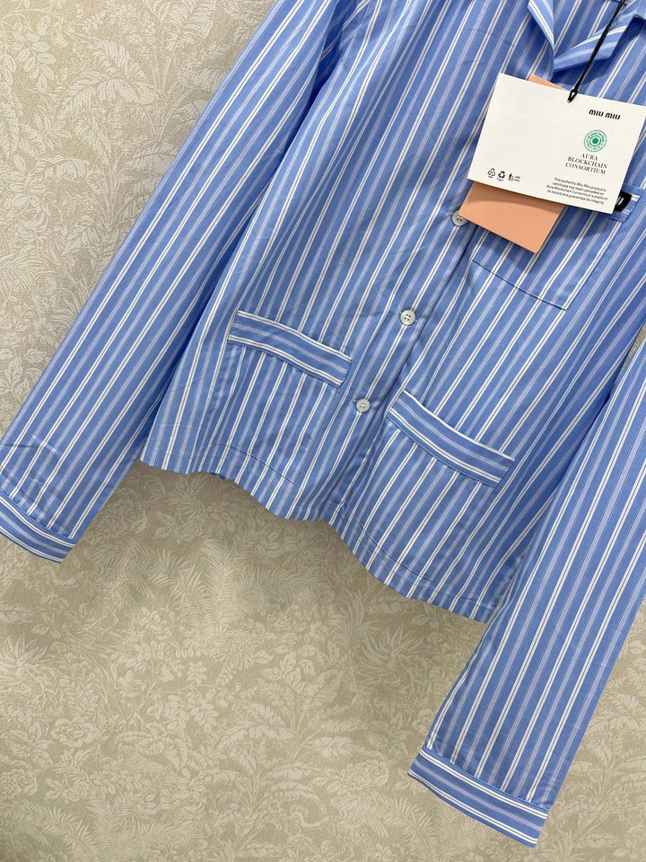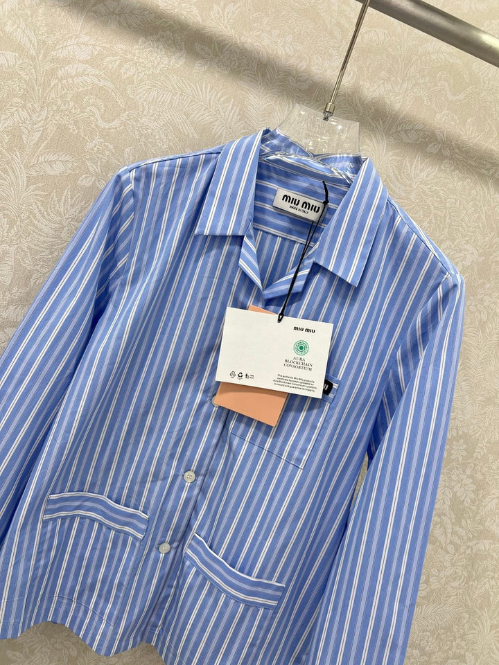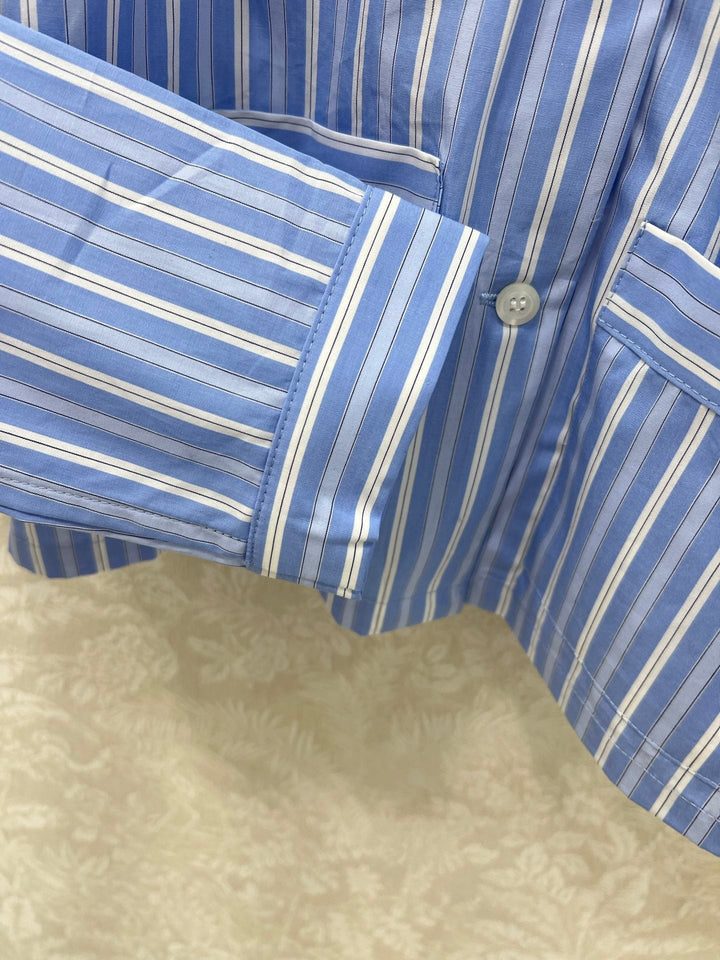 New lapel blue striped shirt