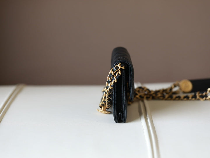 the Coin Card Holder with a gold chain for shoulder carrying, featuring a vintage coin design with additional metal embellishments to enhance the overall sense of value. This small bag is truly a summer essential, perfect for easy outings.