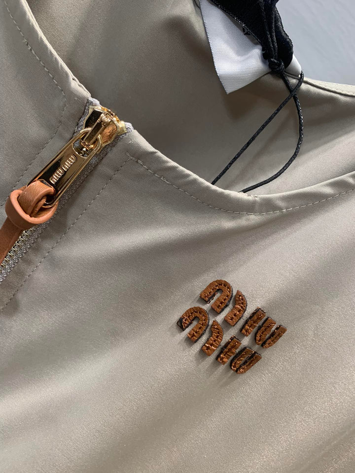 Half zipper closure on the front. Brown leather logo embroidery on the chest and the zipper are very delicate. The elastic ribbed waistband at the waist highlights the waistline. The high waistline is spliced with an A-line pleated skirt. The fabric is not reduced to ensure the stiffness of the skirt, which lengthens the body shape and leg proportions. This is a must-have for Miu girls! Highly 🤩 recommended! Available in S/M/L