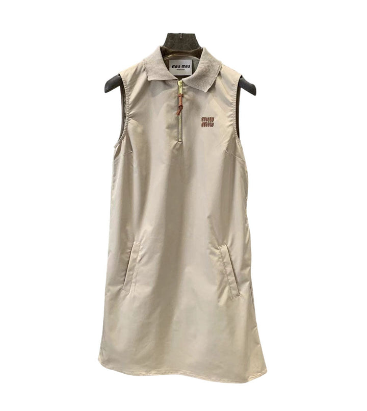 New lapel half zipper micro logo vest dress